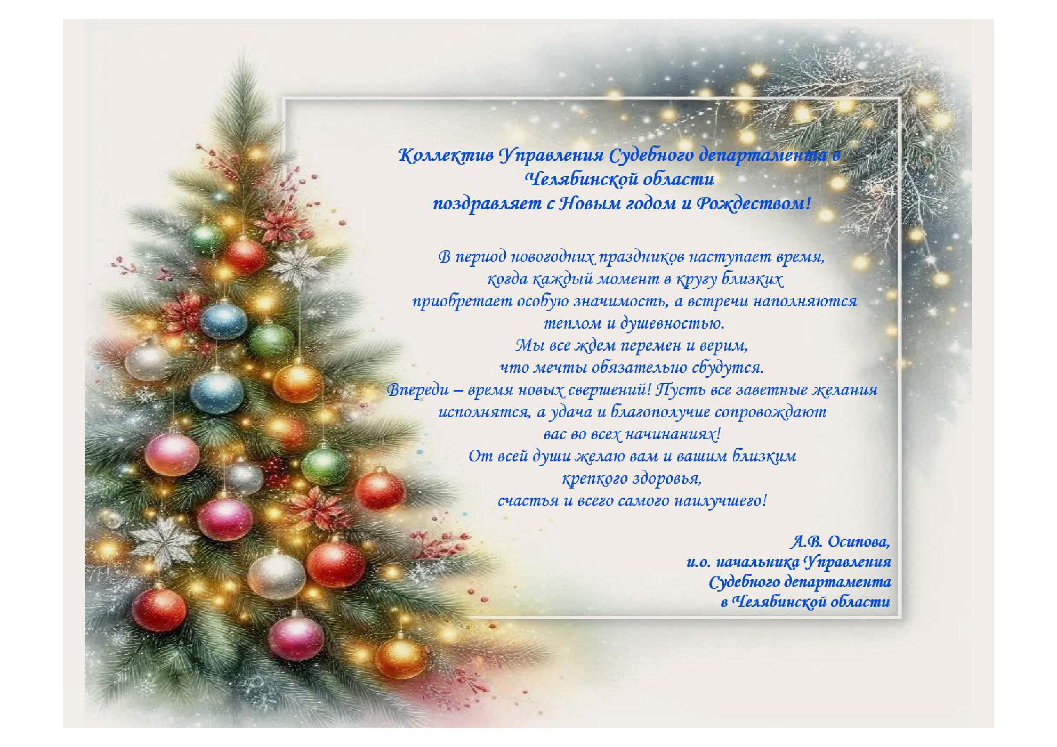 Коллектив Управления Судебного департамента в Челябинской области поздравляет с Новым годом и Рождеством!